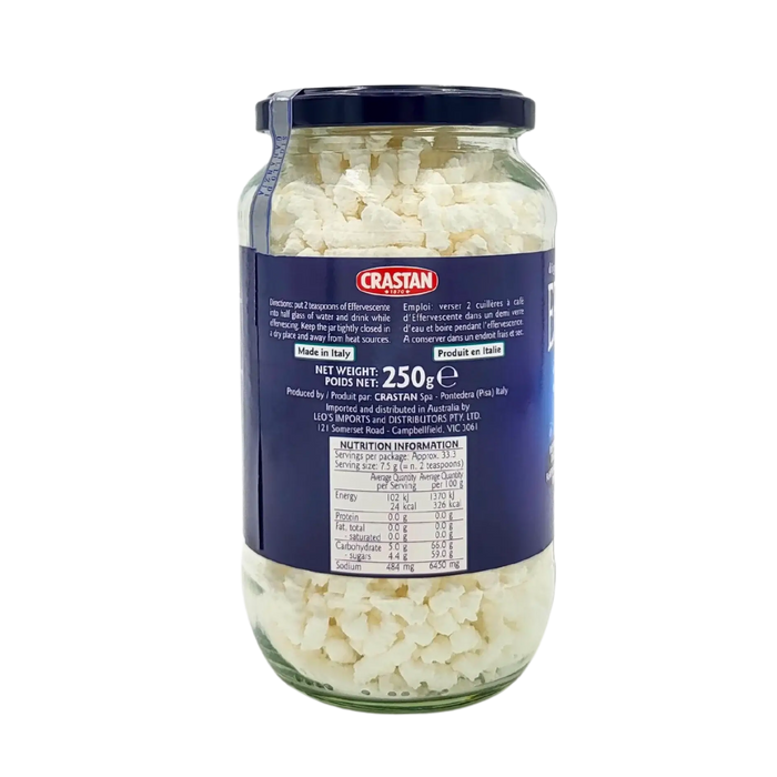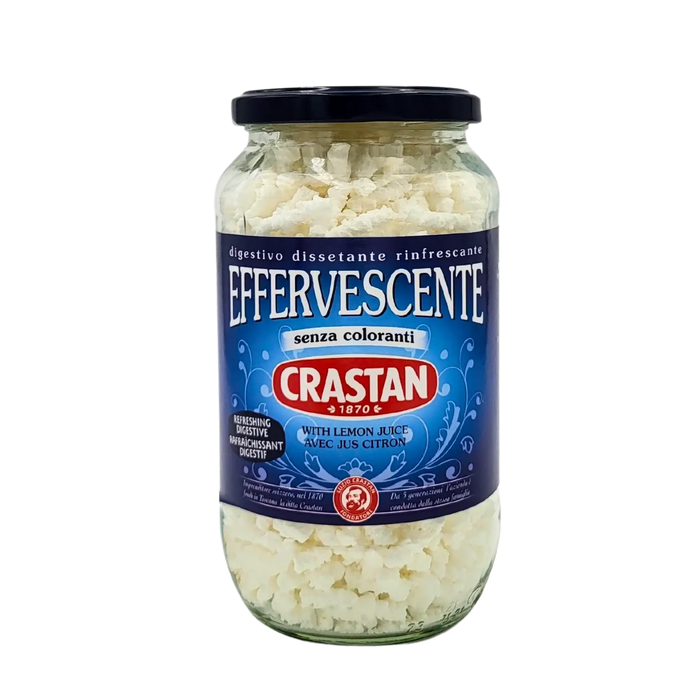 L'effervescent au citron Crastan est un digestif traditionnel italien, né dans les terres authentiques de l'Italie. À base de jus de citron déshydraté et de bicarbonate de sodium, il offre une sensation de fraîcheur immédiate et de bien-être après les repas. Simple à préparer, il vous transportera directement dans l’ambiance estivale de la Méditerranée. 🍋