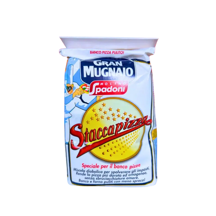 La semoule spéciale pizza Staccapizza est un produit d'exception, fabriqué par la célèbre marque italienne Molino Spadoni, référence dans l'art de la farine. Elle est spécialement conçue pour obtenir des pizzas homogènes et dorées sans brûlure amère.