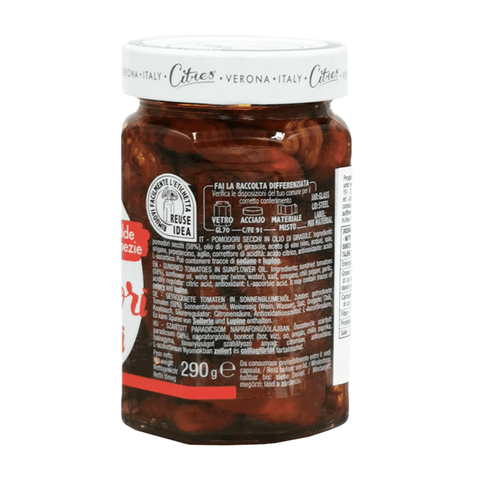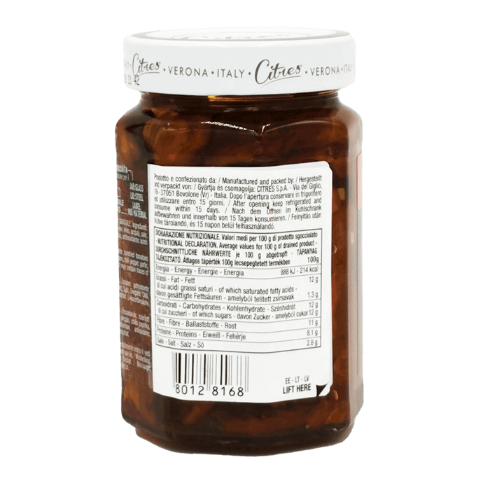 Savourez l'authenticité des Tomates Séchées Citres, assaisonnées d'épices italiennes et plongées dans l'huile d'olive. Un goût riche et aromatique, directement de l'Italie.