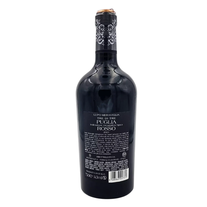 Issu des vignobles ensoleillés des Pouilles, le vin Lupo Meraviglio est un hommage à la richesse de cette région viticole italienne. Ce vin offre une expérience gustative authentique, fruitée et épicée, idéale pour vos repas conviviaux.